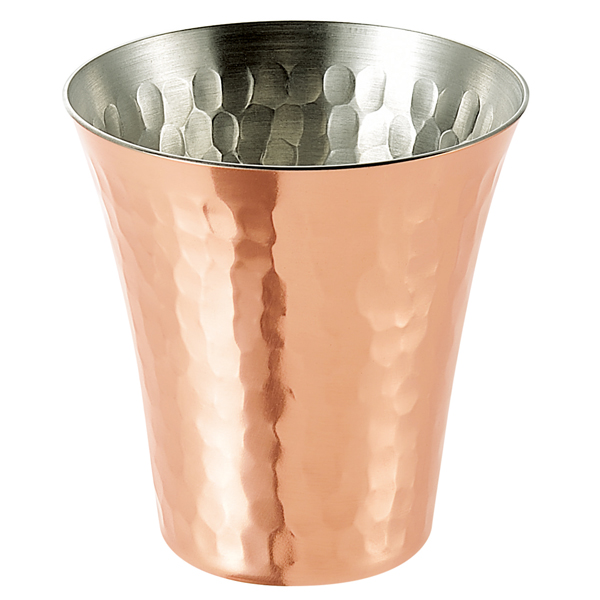 ●ヒンヤリとした至福の口当たりをお楽しみください。 ●容量:約65ml ●日本製 ●黒段ボール箱入り 素材に使われている銅の効果について 銅は鉄の5倍、ステンレスの25倍もの熱伝導率の良さを誇ります。銅カップを使用して冷たい飲み物を飲むと、口当たりや手に伝わる清涼感は格別です。また、銅には微量金属作用(銅イオン作用)という、 水に混ざるだけで驚異的な殺菌作用を発揮する性質があります。この銅イオンの働きが微生物の発生を防ぎ、銅食器を衛生的に保ちます。 |