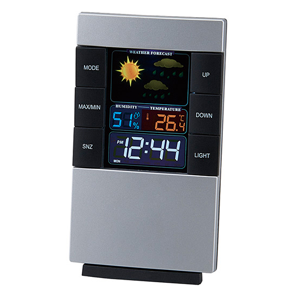 音・振動センサーで自動点灯!カラー表示で見やすいウェザークロック