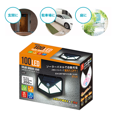 ●防水仕様で屋外での使用にも対応しています。 ●暗闇に動く不審者の行動を人感センサーで感知し、100個のLEDライトが辺りをパッと照らします。 ●3つの点灯モードがあります。 ・MODE1 センサー:近づくと明るく点灯 ・MODE2 薄明り :常時暗めに点灯→近づくと明るく点灯 ・MODE3 常時点灯:暗くなると常時点灯 ●仕様:人感センサー(感知範囲(3m)/約120°、照明範囲(3m)/約260°)、ソーラー充電、IPX4防水 ●箱入り |