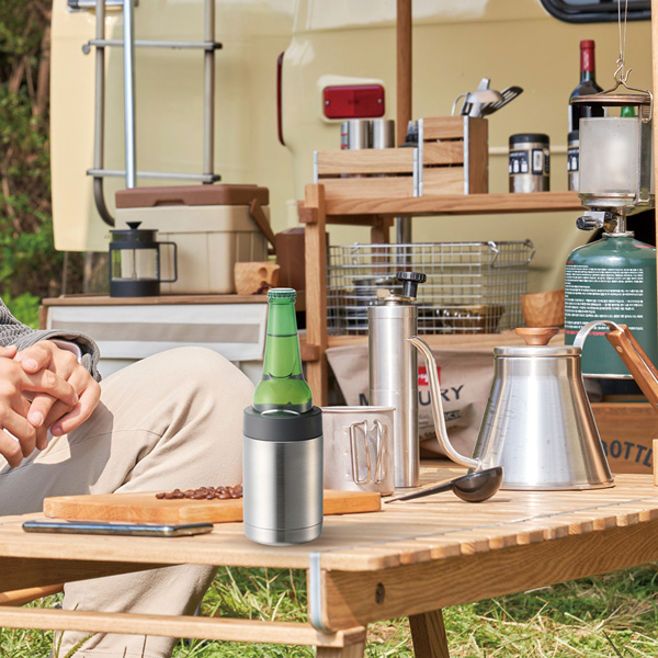 ●冷えた缶やビンをそのまま入れて使えます。 ●上部のゴムがすべり止めに。 ●箱入り |
