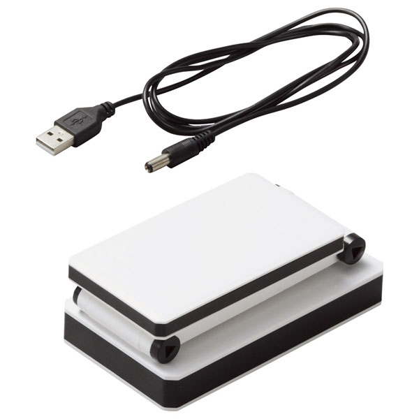 コンパクトに折りたたみ可能なLED電気スタンドです。乾電池とUSB電源いずれでも使用可能なので、外出先でも便利です。