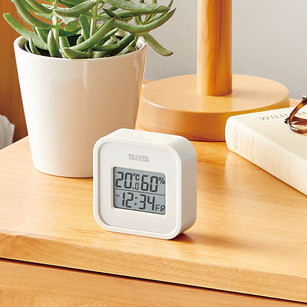 気軽における、小型・シンプルデザインのデジタル温湿度計。