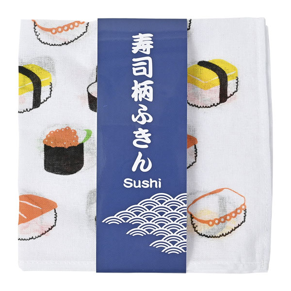 たくさんの寿司ネタがプリントされた可愛いふきんです。