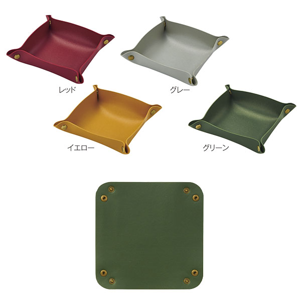 レザー調の生地にアンティークゴールドのボタン。程よくカジュアルダウンされたシンプルなボタントレーです。