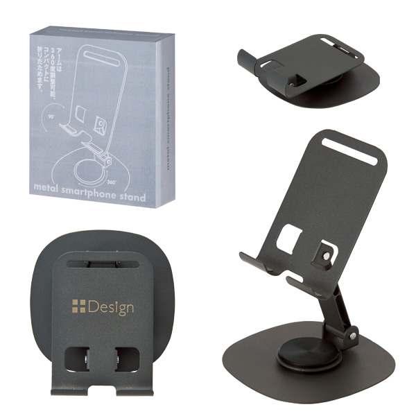 ●コンパクトにたためます。 ●持ち運びに便利。 ●底面に貼る滑り止めシールが付属。 ●アームは360度調整可能。 ●化粧箱入り |
