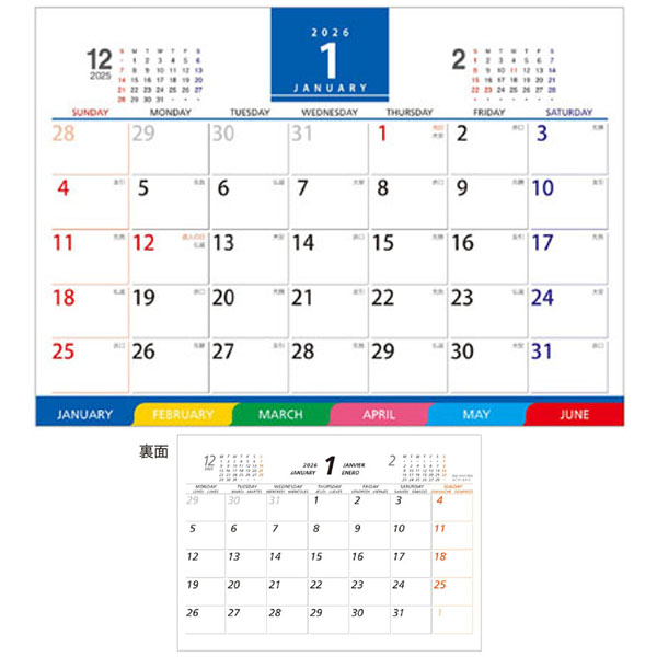 インデックス付きで見やすい!裏面は月曜始まりの外玉仕様のカレンダー