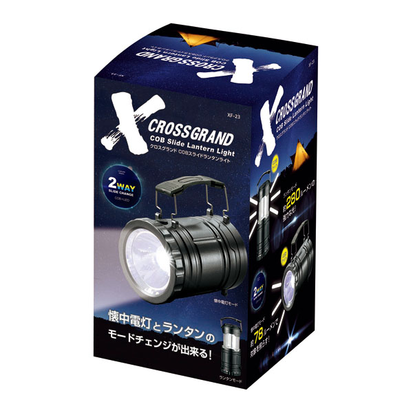 ●本体スライドと持手の付替えでモードチェンジ。 ●LEDライト使用:懐中電灯モード ●COBライト使用:ランタンモード ●収納コンパクト ●電源:単三乾電池×3本使用(別売) ●化粧箱入り |