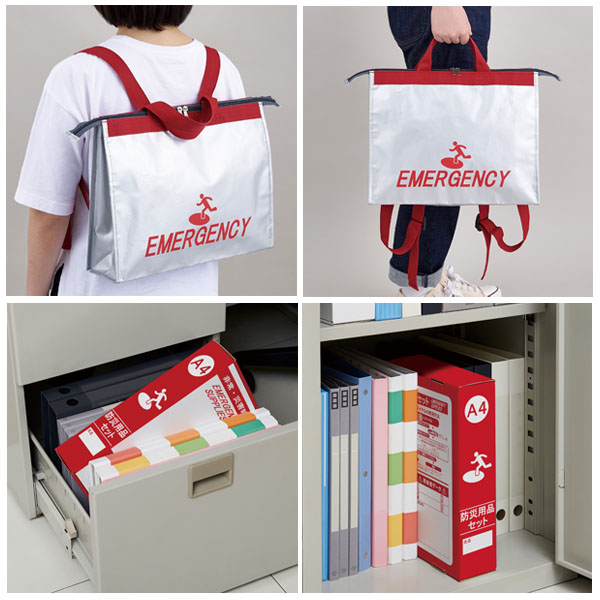 ●セット内容:避難用トートリュック、発光スティックライト、ホイッスル、ウェットティッシュ(10枚入)、ポケットティッシュ、防災ハンドブック、防寒レインコート、軍手、エイトバン(大小×各2)、使い捨てカイロ、マスク×2、綿棒10P ―――――――――――――――――― ●地震・災害などで急いで避難する時に、避難場所までの移動を素早く行えるよう「最低限必要と考える防災グッズ」をセットした避難セット。 ●トートバッグとしても。リュックとして背負うことも。 ●体に合わせて調整ができます。 ●A4サイズパッケージ入りで書棚やデスクの引き出しにも収納可能! ●重量:505g ●F段化粧箱入り |