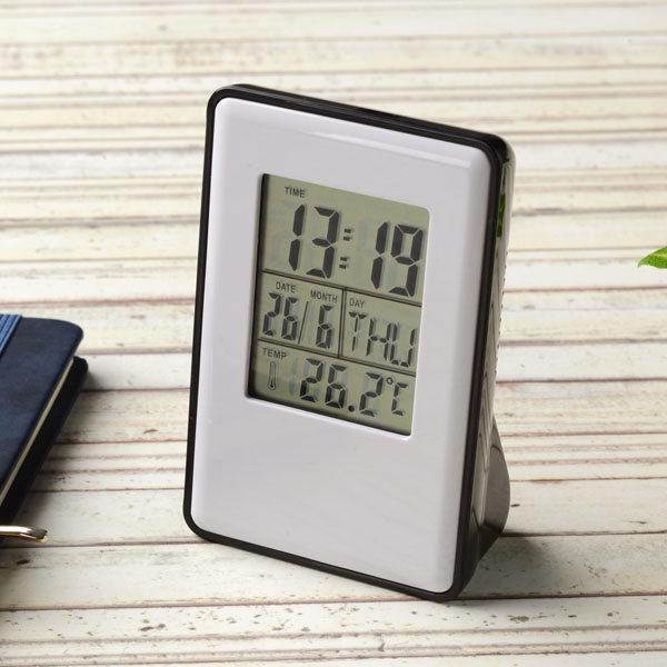見やすいデジタル表示でデスクにあると便利な多機能クロック。