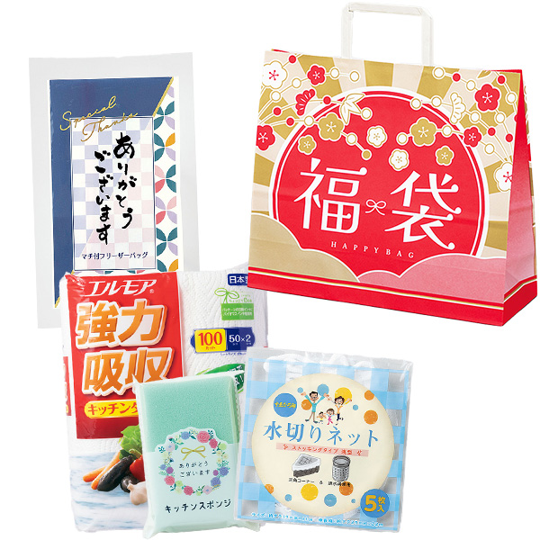 ●歳末セール、初売り、店頭イベント、来場記念に。 ●商品は簡易セット(透明袋に入った状態)で納品されるので、福袋に入れるだけで準備ができます。 ●セット内容:キッチンタオル2ロール、マチ付フリーザーバッグ2枚入、水切りネット5枚入、キッチンスポンジ1個 ●簡易セット済 ●袋入り(福袋同梱) ※商品は一部変更になる場合があります。 ※入金確認後出荷まで最短で約3〜5営業日かかります。 ※お支払いは銀行振込でお願いいたします。 |