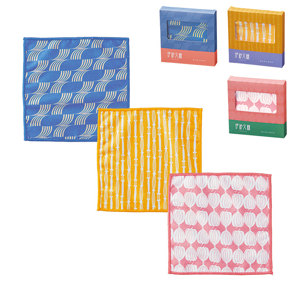 ●柄が見える窓付き化粧箱入り。 ●使い勝手のいい万能キッチンクロス。 ●化粧箱入り |
