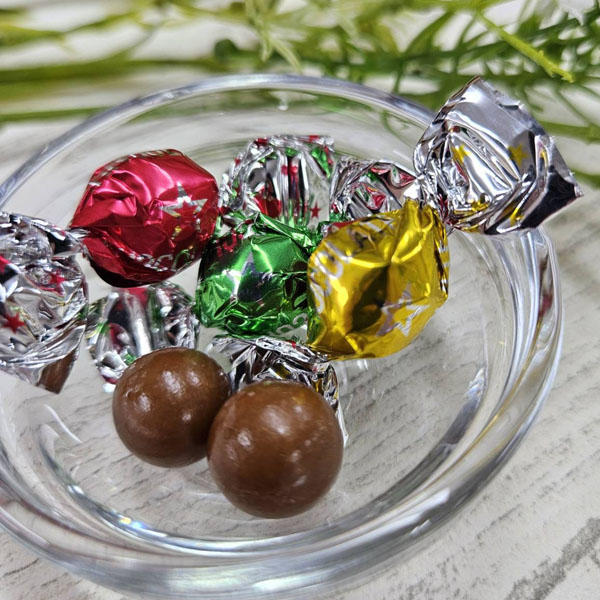 ピンクの筒型のパッケージに黒のリボンで可愛らしくまとめたプチギフト。