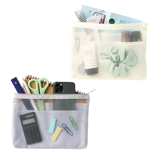 仕分け用ポケット付きで楽に仕分けができるポーチ。