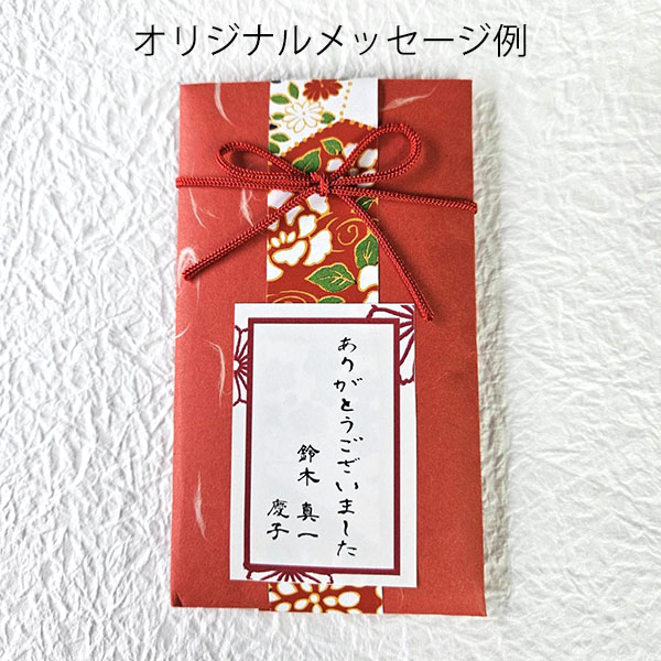 ●おめでたい紅白に金糸の入った和紙で入浴剤を包みました。 ●ちょっとした贈り物に最適。 ●内容:入浴剤 1包 ●100個以上のご注文からパッケージにオリジナルメッセージを印刷可能です。詳しくはお問い合わせください。 ※帯の柄は、変更になる場合がございます。 |