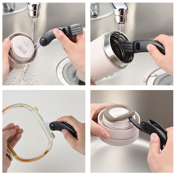 洗いづらい水筒の蓋の隙間やパッキンをすみずみまで洗えるブラシ。