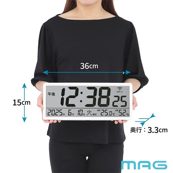 無線LAN(Wi-Fi)でネットと接続し時刻を同期できる大型サイズの時計。