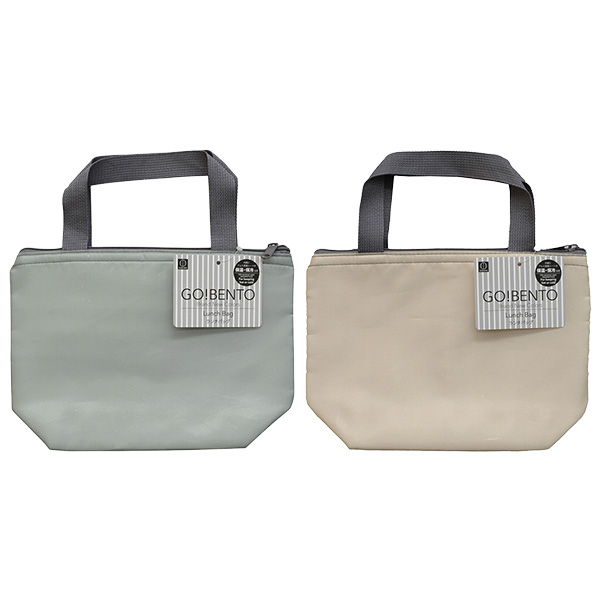 内側に保冷温効果のあるアルミ蒸着付きのランチバッグ。