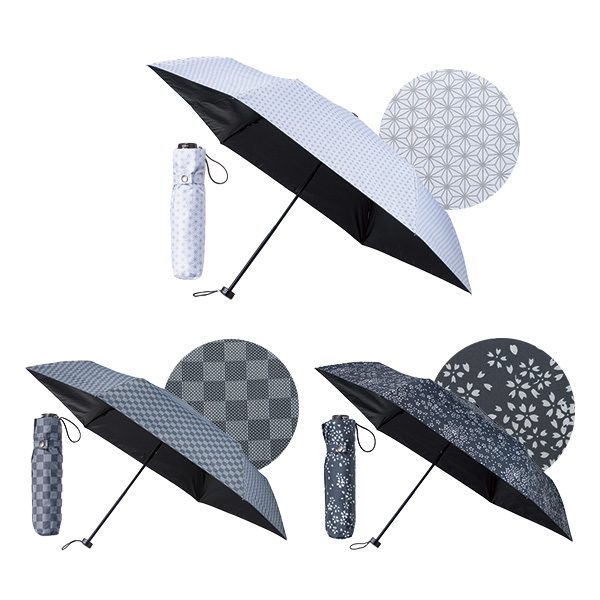 モノクロ和柄 晴雨兼用折りたたみ傘