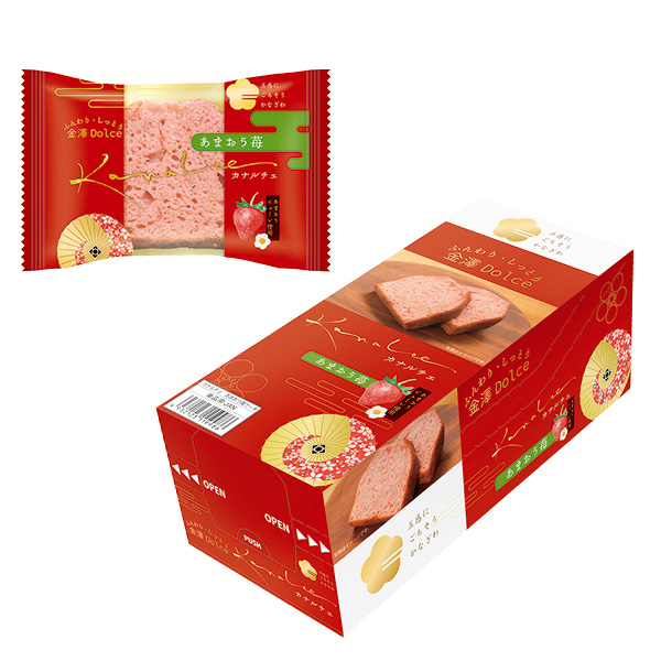 あまおう苺のピューレを使ったしっとりふんわりケーキ。