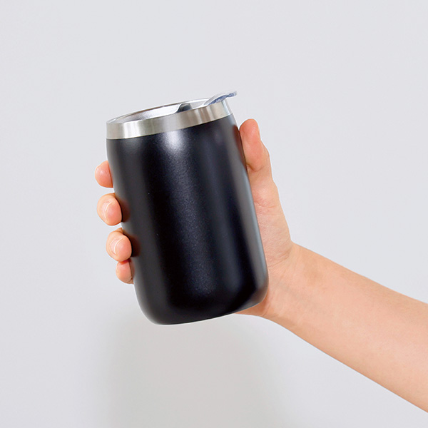 缶のようなシルエットがかわいい、ホコリを防ぎ衛生的に使える蓋付きが魅力のタンブラー。