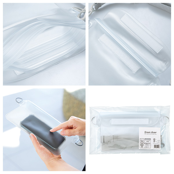 ●3層チャックと面ファスナーで密閉性が高い。 ●ケースの上から操作可能な防滴仕様。 ●水辺のレジャーに最適。 ●ベルトは取り外し・長さ調整可能。 ●防水規格 IPX6:あらゆる方向からの強い噴流水による有害な影響をうけない。 ●ポリ袋入 |