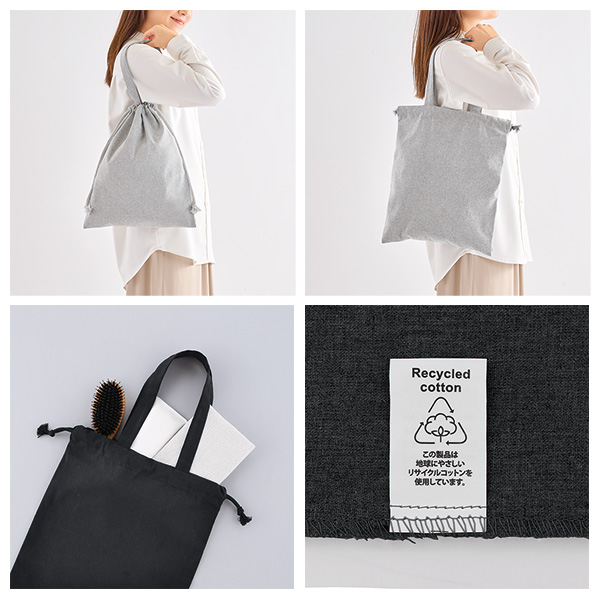 スフィア・リサイクルコットンフラット2WAY巾着バッグ