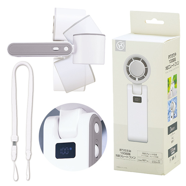 ●1WAY 手に持って、2WAY 首に下げて、3WAY 卓上でも。 ●肌に直接あてる冷却プレート。 ●ヘッドの角度を調整できるので、首から下げても使用できます。 ●ヘッドが180度調整可能。 ●風量100段階調整可能なので、弱から強までお好みの風量に。 ●セット内容:本体、ネックストラップ、蓄電用ケーブル(Type-C) ●連続使用可能時間:ファンモード 約2〜11.5時間、ファン+冷却モード 約0.5〜1.5時間(風量により異なる) ●蓄電時間:約3.5時間 ●バッテリー容量:3000mAh ●化粧箱入 |
