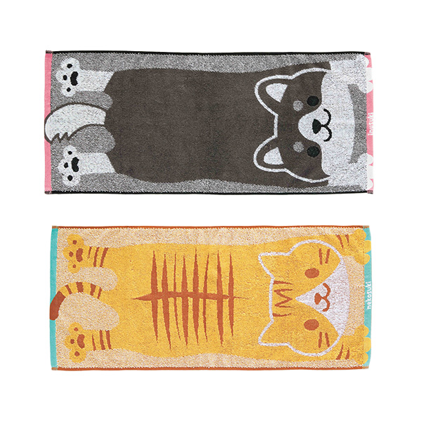 愛嬌たっぷりの豆柴とちゃとらのフェイスタオル。