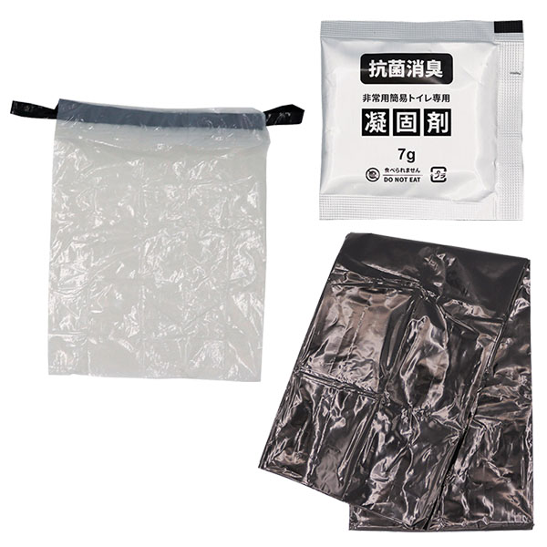 ●45Lの処理袋と凝固剤・耐水袋のセット。 ●様々な場面で処理に役立つお助けセット。 ●セット内容:巾着袋、抗菌消臭凝固剤、処理袋 ●重量:約51g ●圧着個包装 ※北海道、沖縄、および離島は別途運賃が必要です。 |