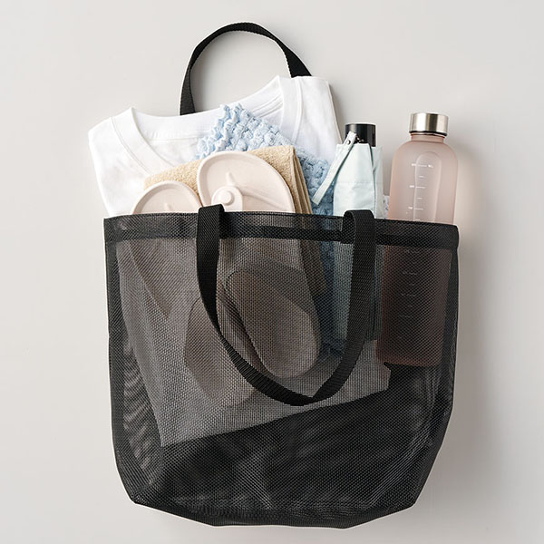 ●濡れたものも気軽に収納! ●自立する、ハードメッシュバッグ。 ●肩掛けができる。 ●タオルやビーチサンダルなどまとめて入れていくことができるサイズ感。 ●容量:約14L ●10枚でPP袋入り |