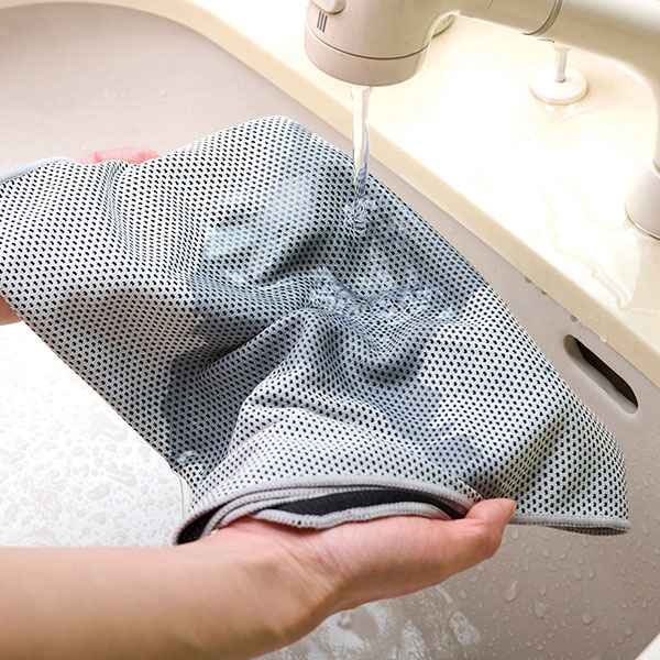●取り付けやすいカラビナ付き。 ●たっぷり水に浸して使用します。 ●接触冷感生地ではありません。 ●化粧箱入り |