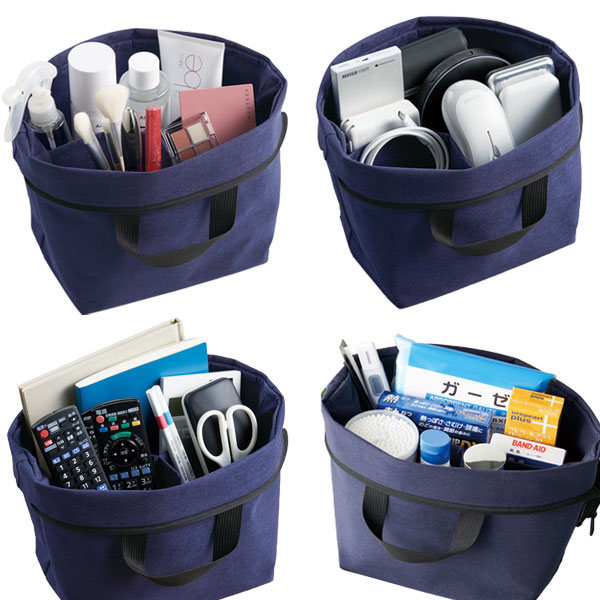 ●トートバッグと収納ポーチの2WAY。 ●3つの仕切りで分別収納。 ●中身を見やすいボックス形状。 ●リビング小物、ガジェット、メイク道具入れとして。 ●包装袋入り |