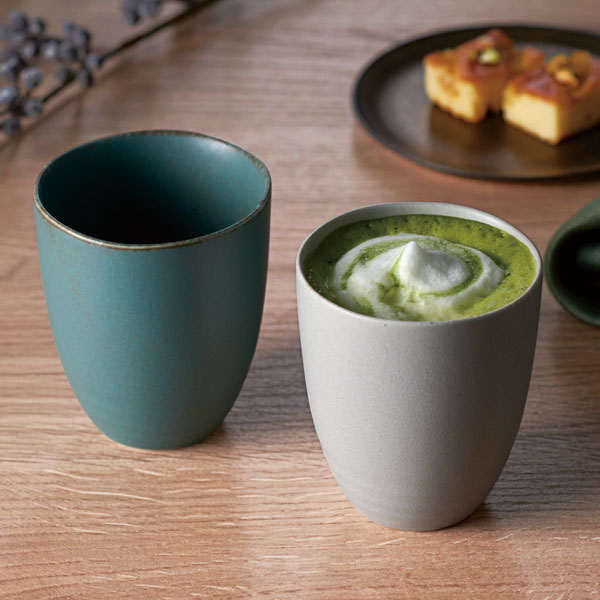 釉薬の繊細な色彩を愉しめる、おしゃれな雰囲気のペアカップ。