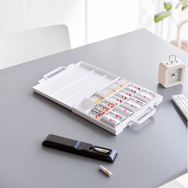 電池をスマートに保管できる、アタッシュケース型の電池ケース。