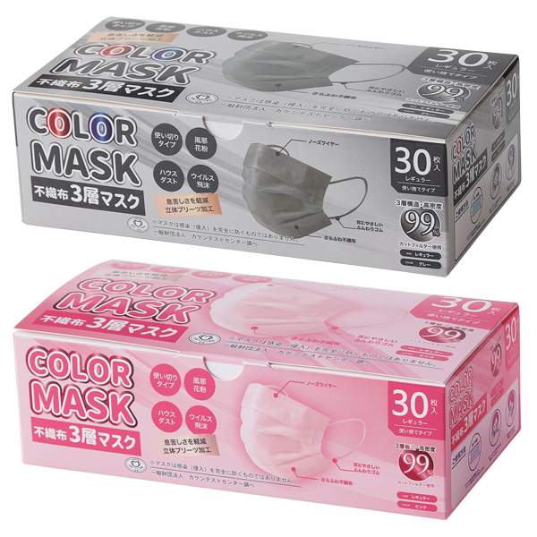 Wワイヤー不織布3層マスク 30枚入(ピンク)