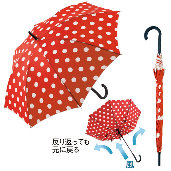 強風時でも安心の「耐風傘」、骨のしなりや構造などに工夫し、耐風性を実現しました