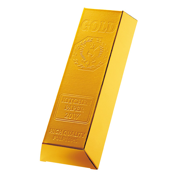 インパクトのある金塊型の箱に入ったキッチンペーパーです