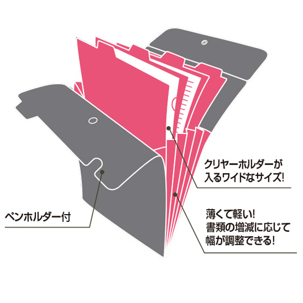 バッグに入れたまま書類の出し入れが可能なタテ型ドキュメントホルダー