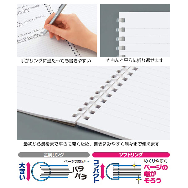 書くとき心地いい、新感覚のやわらかリングを採用したリングノートの新定番