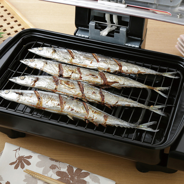 ワイドサイズの庫内で、大きめのサンマも切らずに丸ごと4尾焼けます!