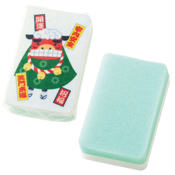 お正月らしい獅子舞柄入りのスポンジ