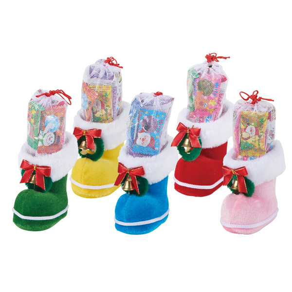 ●柔らかい布生地で表面を覆った暖かみのあるカラフルなXmasブーツにお菓子をセットしました。 ●内容量:お菓子×4 ●賞味期限:製造日より150日間(常温) ●日本製(お菓子) ●ポリ袋入り ※お菓子の内容は予告なく変更する場合がございます。 |