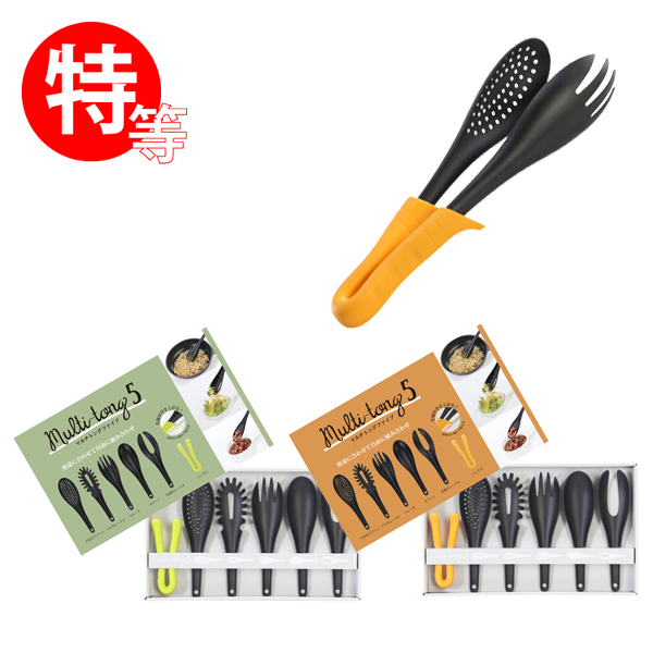 ●セット内容 特等 マルチトング5(ファイブ) 1個 1等 リーフ・キッチンシリコンセット 2個 2等 10WAYキッチンはさみ 3個 3等 マルチオープナー5(ファイブ) 4個 4等 シリコーンマルチたわし 5個 5等 デザインペーパーナプキン(10P) 85個 ●付属品:抽選箱×1、くじ×100、明細表×1、店頭用お知らせPOP×2、A3ポスター×1 ---------- ●マルチトング5(ファイブ) 異なるツールが5種類付属。お料理に合わせて付け替えられます。先端が調理台につかない設計なので衛生的です。 ●リーフ・キッチンシリコンセット エコを連想させる木や葉っぱをモチーフにしたシリコン製のキッチン用品3点セットです。 ●シリコーンマルチたわし 洗剤なしでも汚れが落ちやすいエコなシリコーンたわしです。 ※一部色・柄・商品が変更になる場合があります。 ※お支払いは銀行振込でお願いいたします。 |