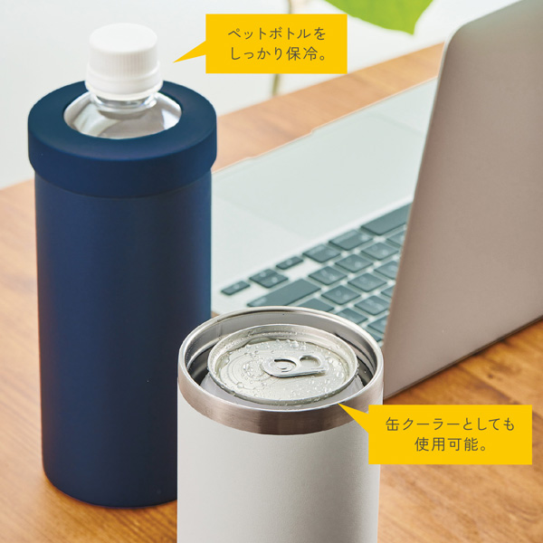ペットボトルホルダー、缶クーラーにもなる真空二重構造のステンレスボトル