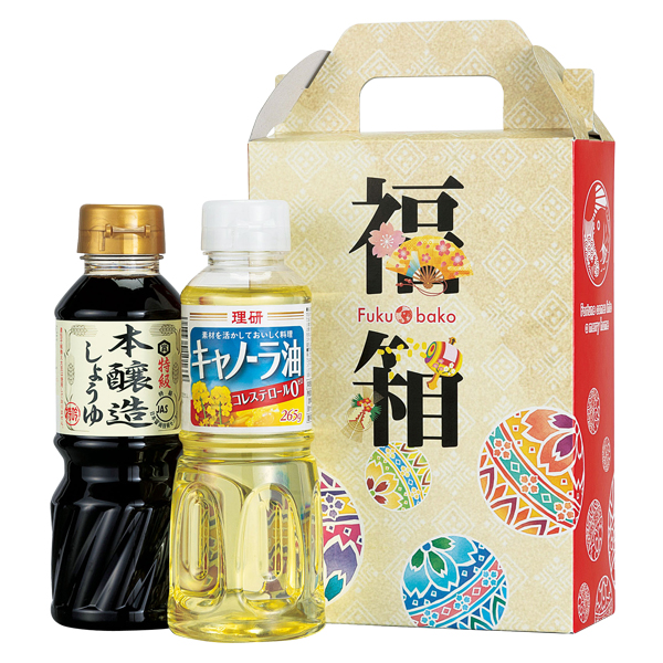 ●歳末セール、初売り、店頭イベント、来場記念に。 ●持ち運びしやすい持ち手付きの福箱に入っています。 ●セット内容:理研キャノーラ油265g×1、ワダカン本醸造しょうゆ300ml×1 ●賞味期限:製造日より1年間(常温) ●国内製造品 ●化粧箱入り ※商品の性質上、画像と実際の商品が異なる場合があります。 ※お支払いは銀行振込でお願いいたします。 |