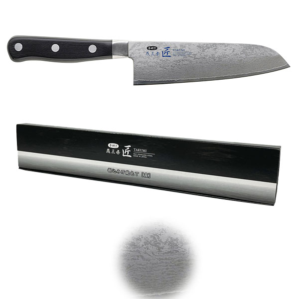 軟質と硬質のステンレスを交互に鍛造して日本刀のような美しい霞模様を出した包丁です