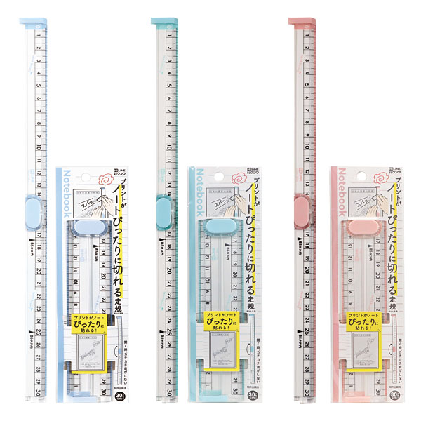 ●授業中に配布された学習プリントをノートぴったりに切れる(※)、折りたたみ式の30cm定規です。 ●定規のガイドの位置に合わせ、プリントに印をつけて2箇所切るだけ! ●45度の傾斜加工で紙を簡単&きれいにカットできます。 ●ロック付きで丈夫なポリカーボネイト製です。 ●開く時、カチカチ音がしません。 ---------- ●ベルマーク運動参加商品 ●その他仕様:見やすい大きい数字、10mmの方眼メモリ付き ●ヘッダー付きデザイン袋入り ※ノートから3mm程度ひかえたサイズになります。 |