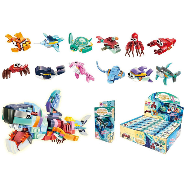小さなブロックを組み立てて、海の生き物が作れるパズルです。