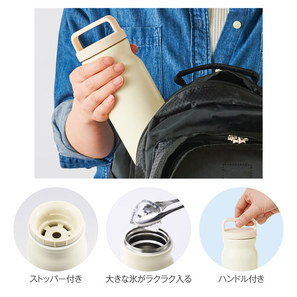 たっぷり容量&人気のハンドル仕様。氷が飛び出さないストッパー付き