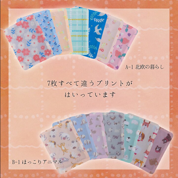 | カラー | 北欧の暮らしデザイン(A-1)、ほっこりアニマル(B-1)(指定可) |